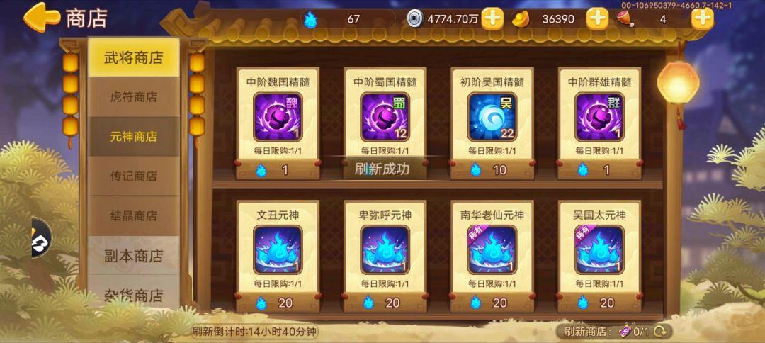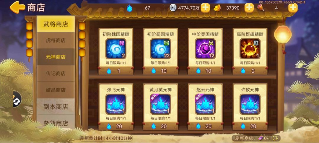 今天没更新前的元神商店,更新后是不是元神顺序变了?是的话只能强刷买张飞、黄月英、南华、貂蝉了。