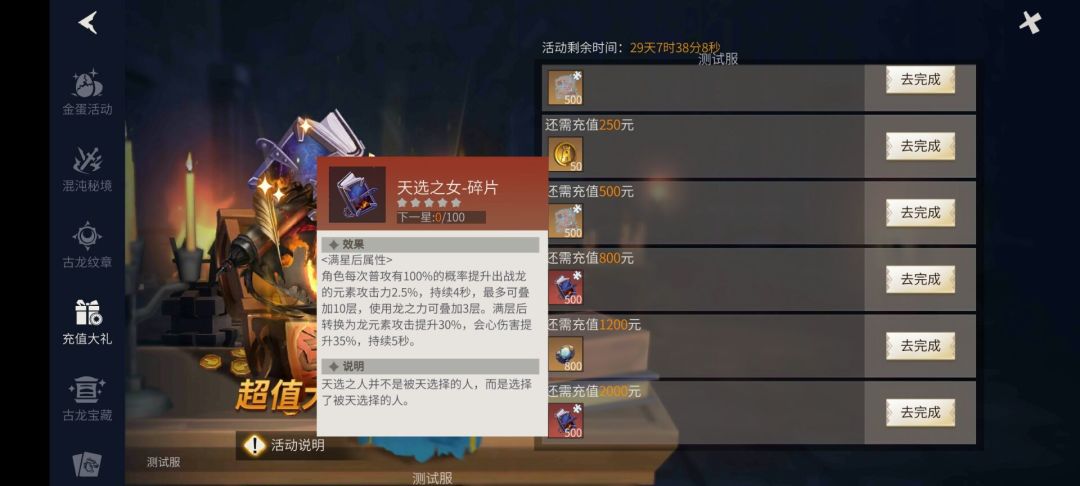 插一条:麻了,纹章给的元素伤害被大砍,收益率爆低,不建议买纹章相关礼包,终究还是龙契约香