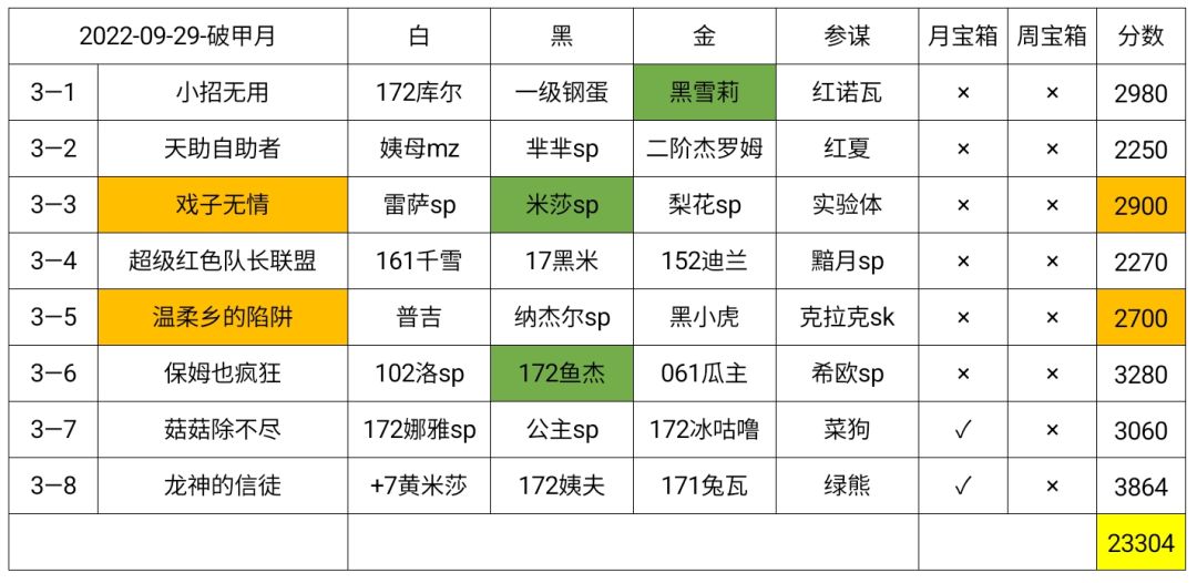 金位带瓜主千万别选月箱,主要凹点在瓜主劈瓜对象,3-8不用粉泉的话放这里多10分。