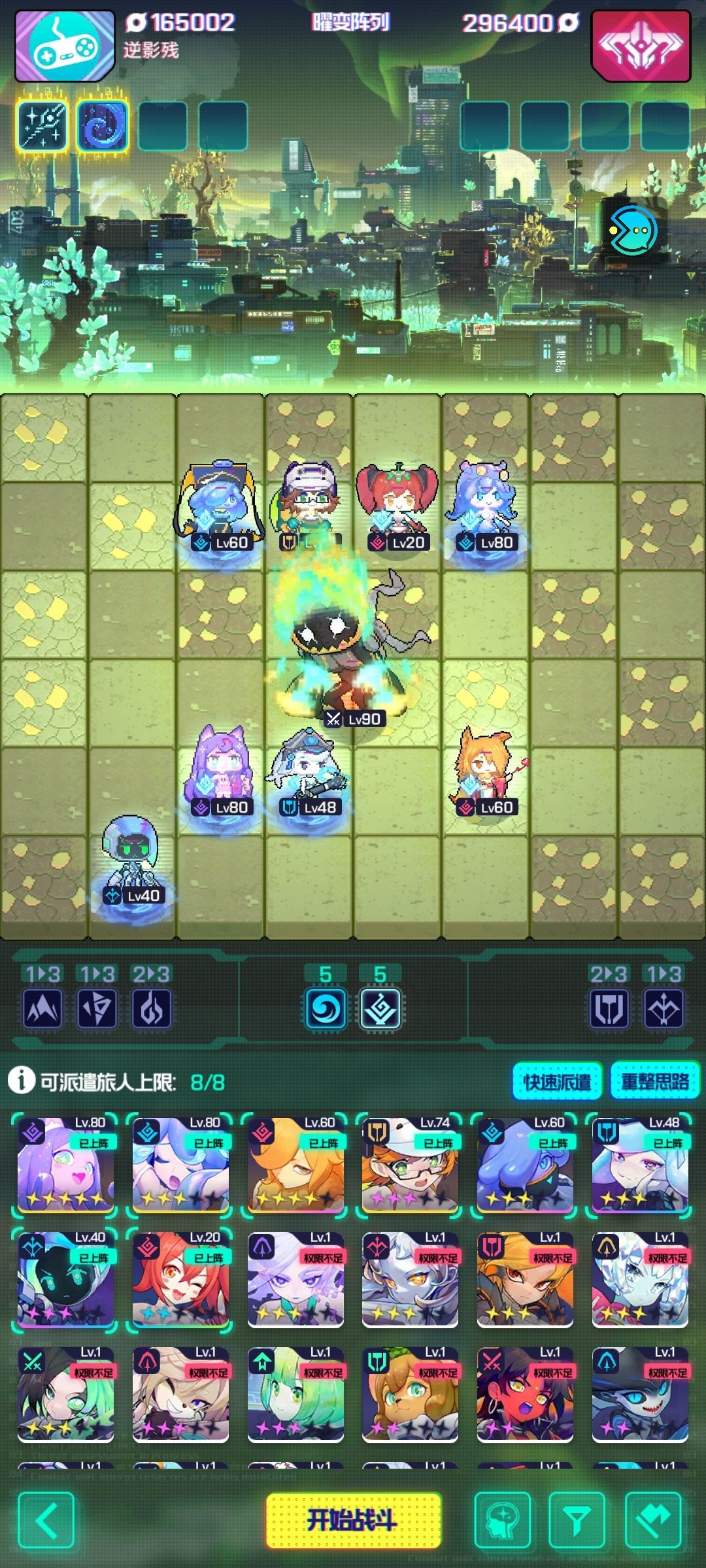 猫猫和维特这俩不动,维特坦度要求能开出一次大,猫猫要求输出高。其他人凑羁绊补属性即可。