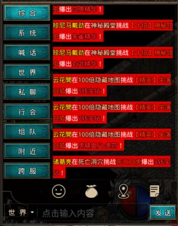 世界:聊天频道,所发消息在线人员皆可看到