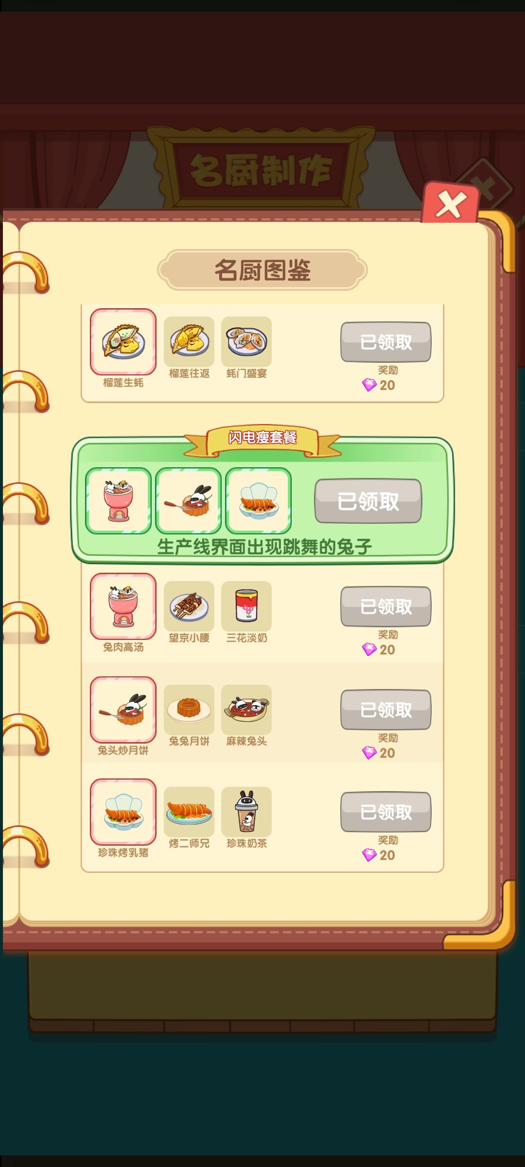 兔跳墙不是合成的,其他菜品都获得就解锁了