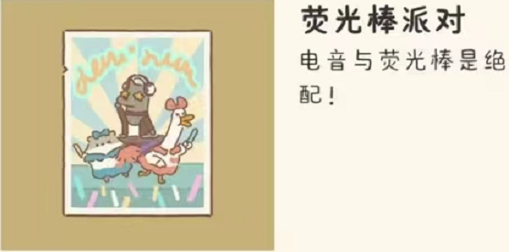 1.荧光棒派对:需要召唤嘉宾:萌萌仓鼠、萌萌鹅、打碟狼,需要的设施:寂静之时,表演:该海报全员在演出状态,则对应角色收入提高180%。