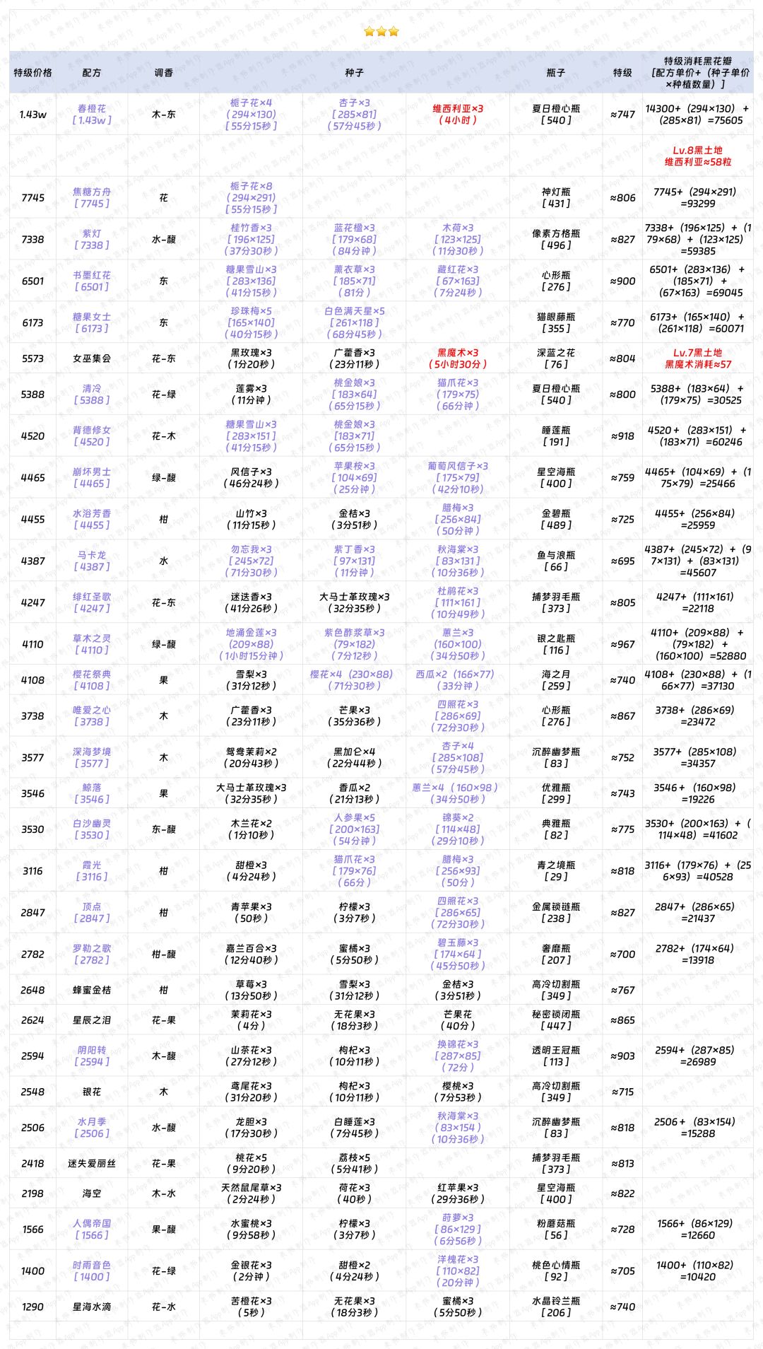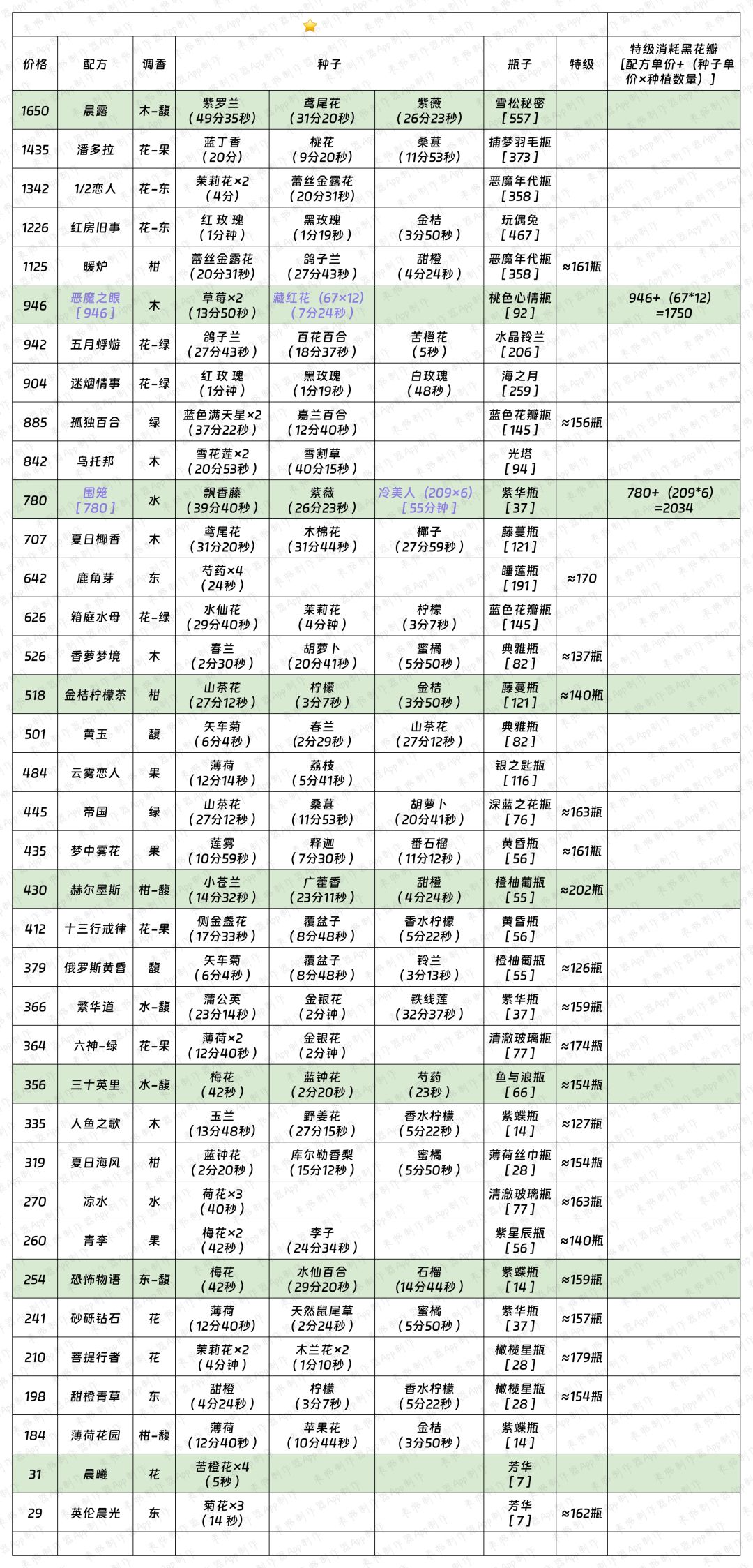 2.有特别制作的熟练度加成,所以黑市种子的种植数量和刷到特级的成品数量仅供参考(但应该相差不大)