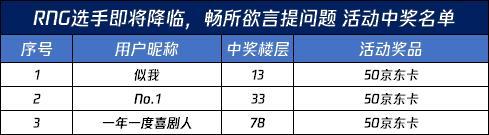 RNG选手即将降临,畅所欲言提问题 活动现已开奖,以下是中奖名单~