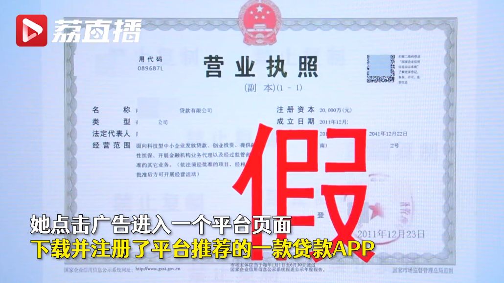 有资金需求的她正好看到一个贷款广告,她点击广告进入一个平台页面,按指引下载并注册了一款贷款APP,一通操作之后,在发现贷款APP显示有余额,以为是贷款获批,准备申请提现。随后,客服提示她称其填写的资料上面有信息错误,导致账户被冻结,想提现需要交保证金,对方并提供了一份带有公章的账户图片。