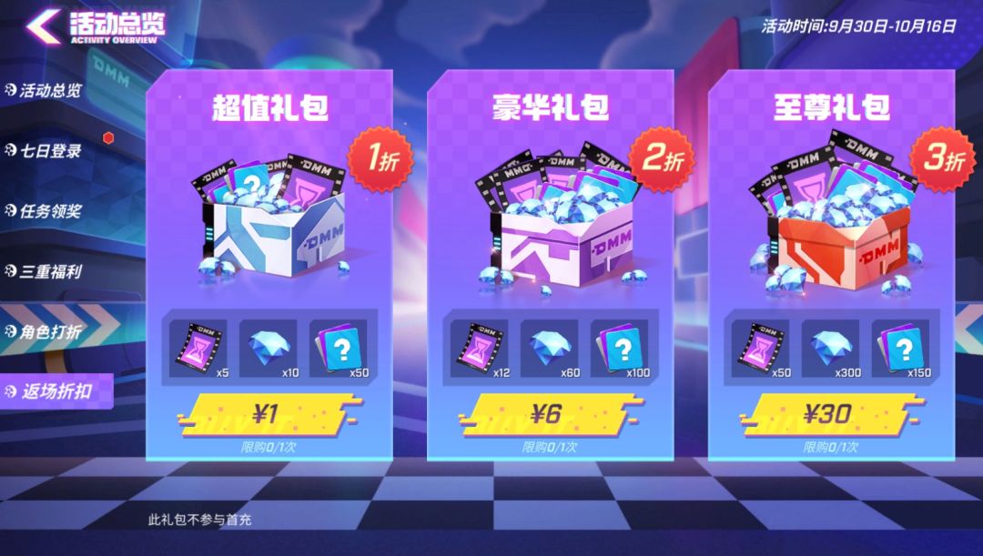 09月30日至10月16日,超值礼包限时登场~