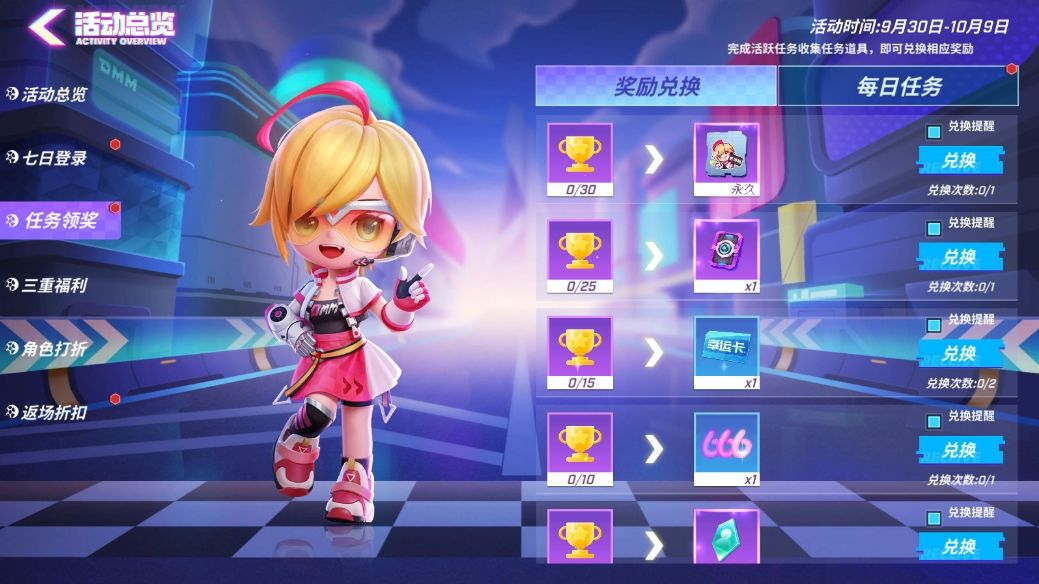 09月30日至10月09日,少年们完成每日任务即可领取【荣耀奖杯】!