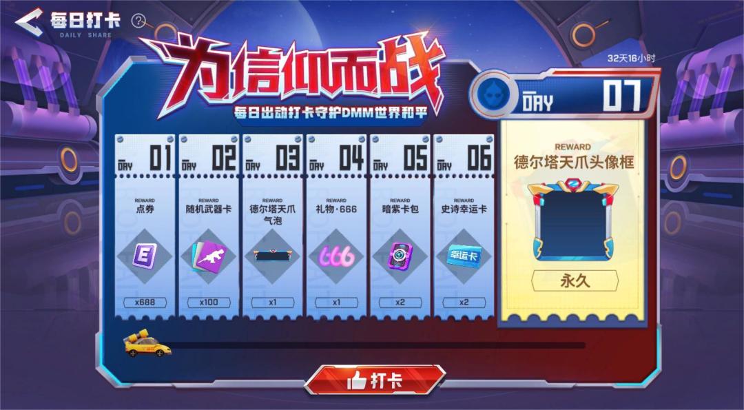 连续打卡不仅可以拿到丰富资源奖励,还能获得联动限定头像框·德尔塔天爪哦~