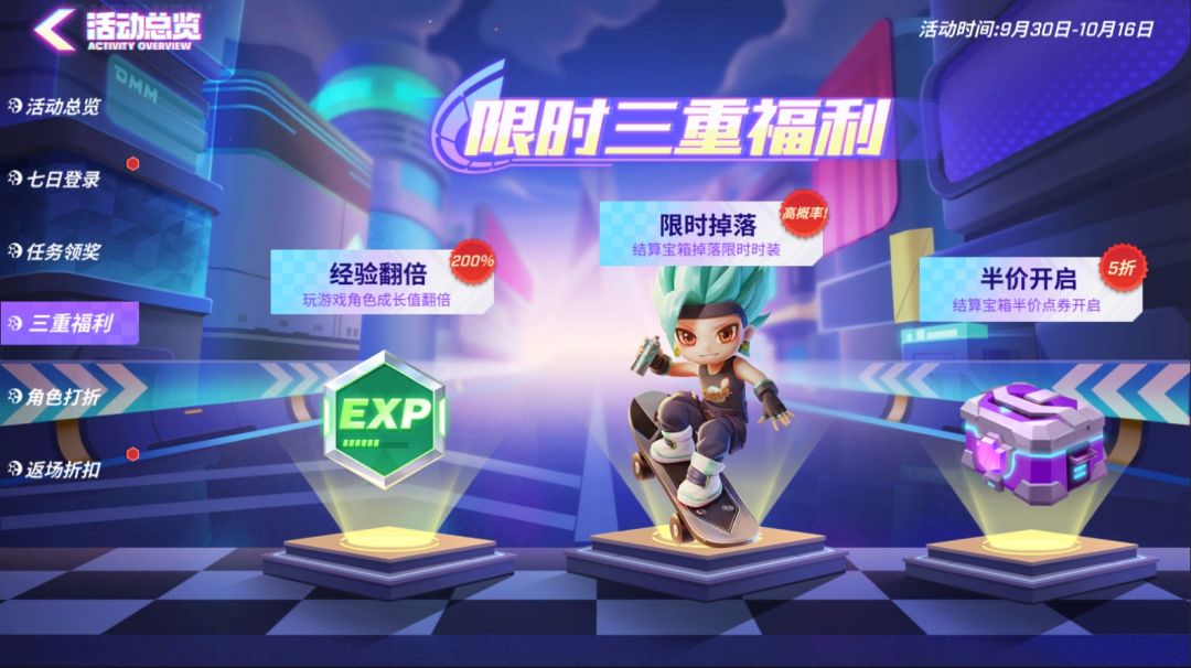 09月30日至10月16日,三重福利在等着少年们解锁哦~
