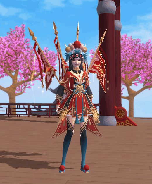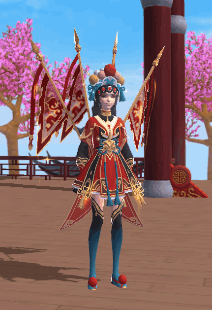 我已经悄悄透露了我们全新的服饰哦这背后的小旗子作为国人应该不陌生吧就是京剧里的“靠旗”戴上“靠旗”便意味着角色是武装的形态处于战斗状态