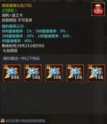 累计在线30分钟可获得糜竺·武威擎风体验(1天)*1、月之匙*2、高级星缘礼包*2、封魔战功*30。