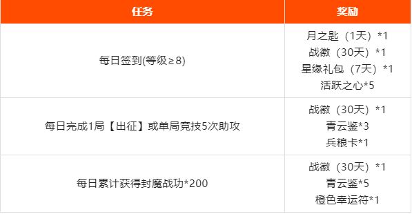 征战四方,活动期间每日完成任务或者累计签到能领取额外奖励,超多福利来袭~
