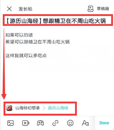 参与路径:发表帖子→选择子板块【游历山海经】→帖子内容为话题二选一,即视为参与成功啦!
