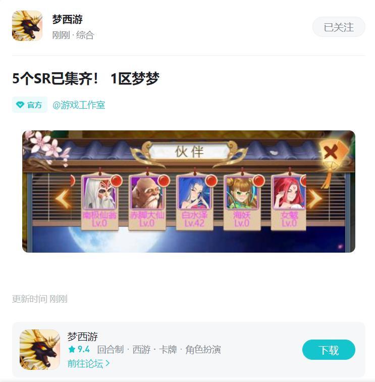 ◆活动内容:在活动期间,集齐游戏内的5个SR并截图在《梦西游》论坛进行发帖发布,附带你的区号角色名即为有效!