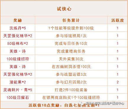 新版本“江湖之路”→“金戈荡寇”活动来袭!活跃值累计满100即可获得“极品重楼肩”!与江湖之路不同的是,该活动是在侠士个人达到100级后开启!开启后14天结束,即将进行等级突破的少侠速来预习!点击滑动下方图表查看“金戈荡寇”活动所有任务和奖励哦~