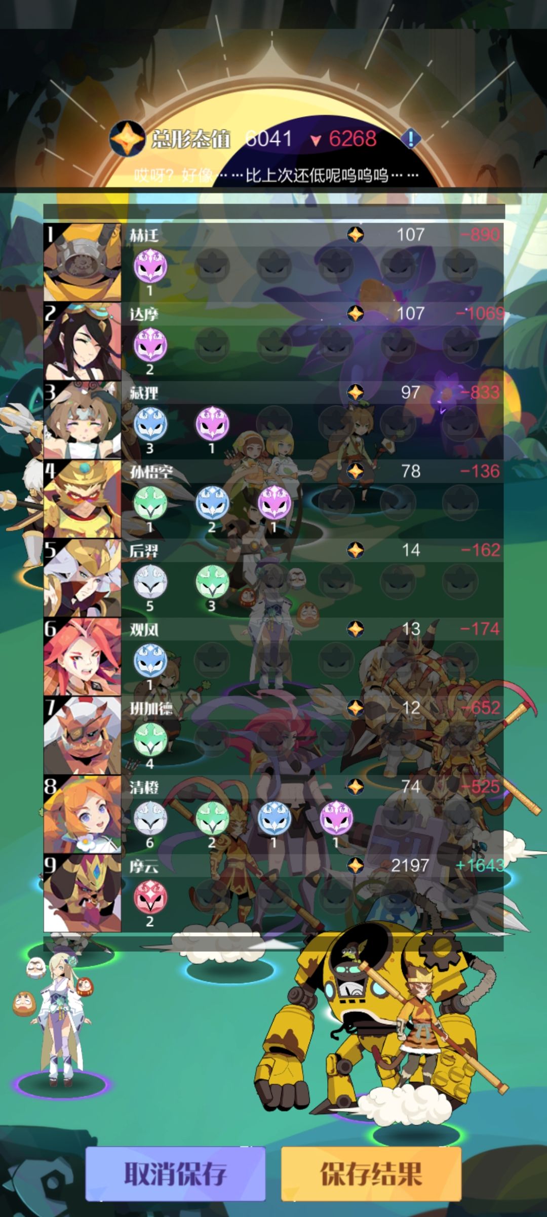 如果我不管被动了,就靠每回合自动回10点,全力合成,最后满蓝再纯净消一下呢,我确实试了,最后也很低,而且其他伙伴甚至还有白色: