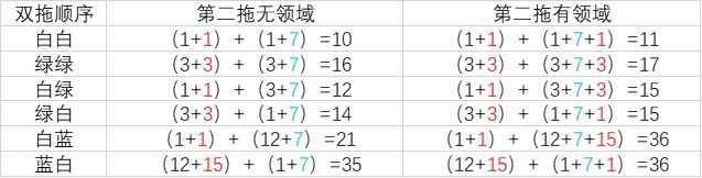 2.如果是从领域内拖出,无论是拖消的第几步,那么由于被动的影响,将额外增加自有形态133%加成,即1.33倍,本游戏小数都是向下取整,所以加成为白1绿3蓝15紫66,下表中由红字显示;
