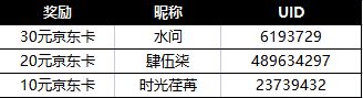 一等奖:30元京东卡