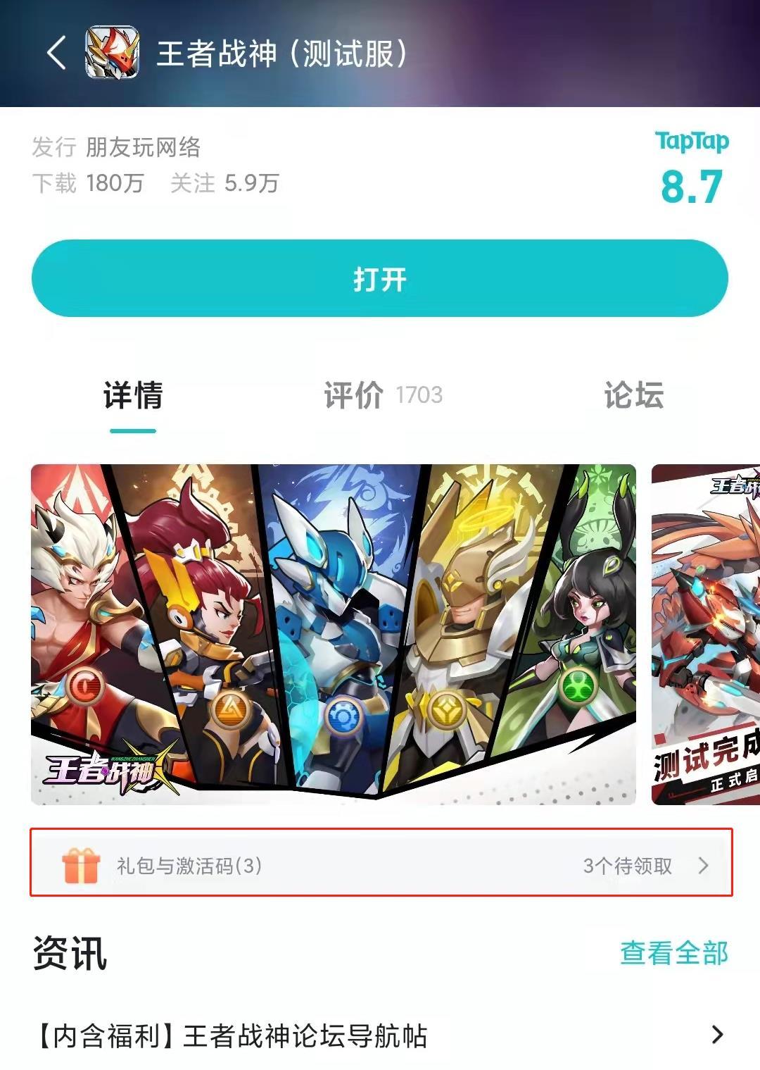 9月30日起《王者战神》将在Tap社区发放暑期兑换码,大家可按以下步骤领取哦~