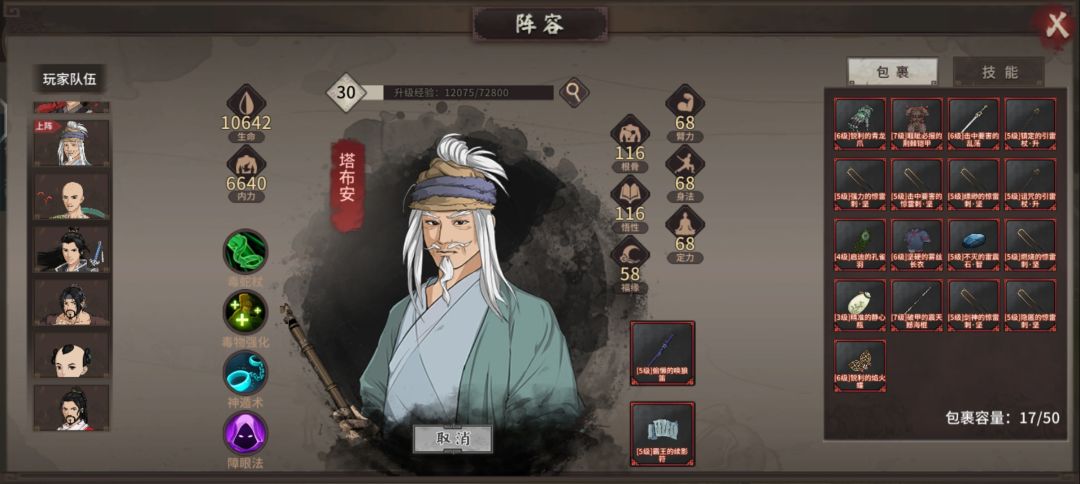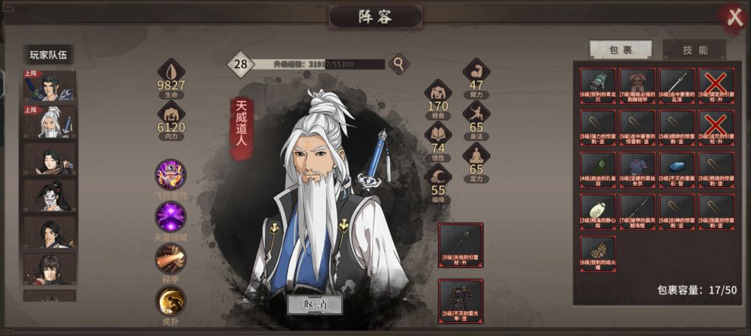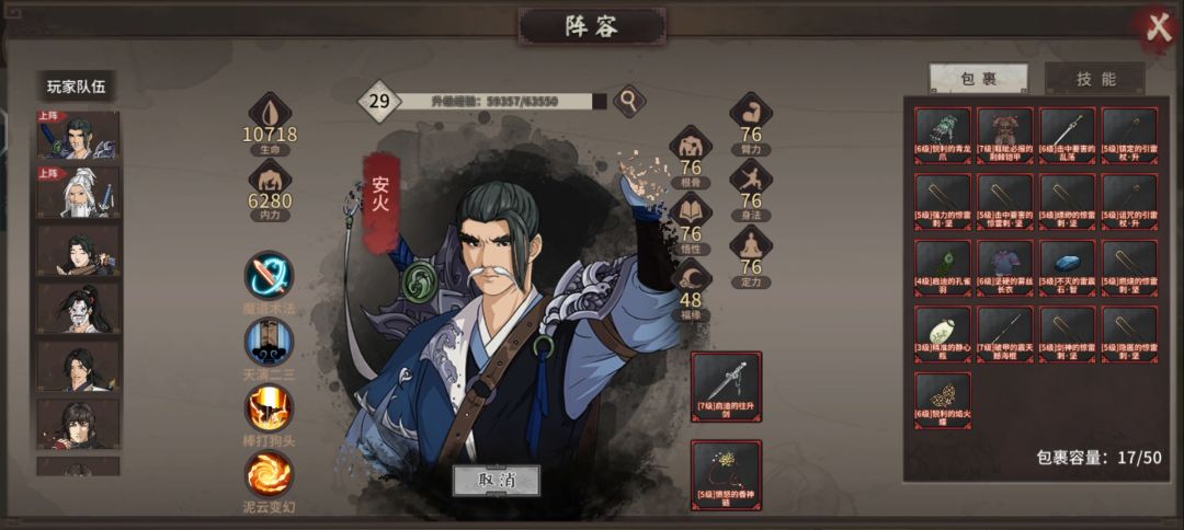 武器选择堆定力、臂力以及怒气,以保证开局概率放出奥义。这两个武学都是中前期出的,强烈推荐!