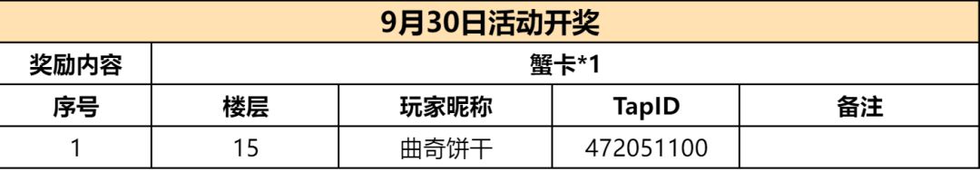 开奖啦!恭喜“曲奇饼干”获奖,请根据楼中楼的回复添加客服小姐姐的QQ,并提交活动链接、游戏昵称、游戏ID、Tap个人主页截图等信息兑奖~