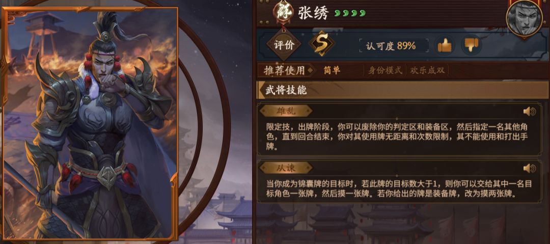 要说张绣强吗,不好说,总体看比张让差一个档次,都是打一波的武将,但张让可以分次根据形势收人头,张绣真的是一波流极限1换1,三国反贼杀的巅峰代表,建议军八稳定上ban位,跟神曹操之流一样。因为三国杀移动版武将定价往往有参考斗地主的因素在内,譬如麹义,而张绣在斗地主里可真是超绝的农民,30秒结束战斗,就是你的回合秒不掉我,我的回合必秒掉你。