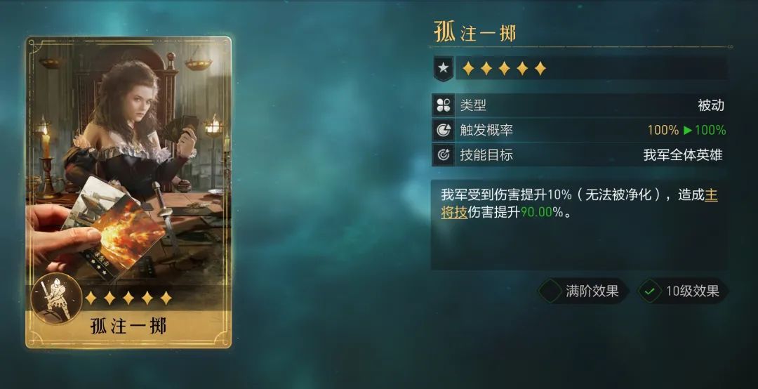 香香主将技综合720%伤害率,同时提升自己40%伤害(武力加成),以后期500武力来计算,最终可提升100%伤害!算是非常强力的一个主将技了。