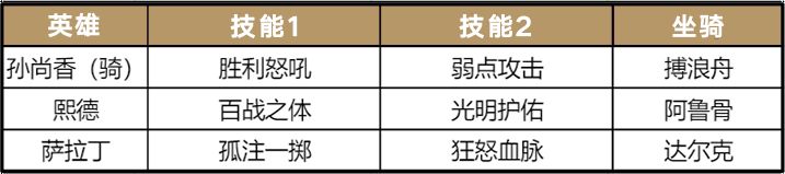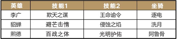 适用场景:集结、野战、开荒适用条件:骑兵已经有了吕布/亚瑟,李广没地去