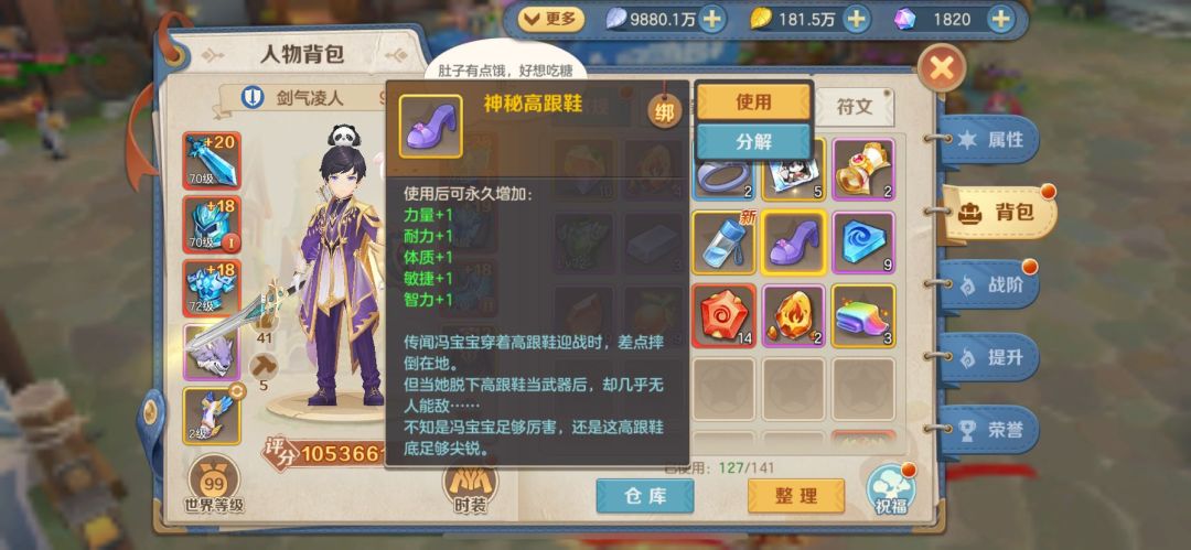 王也的水杯及高跟鞋的任务奖励,使用后可以获得全属性+1