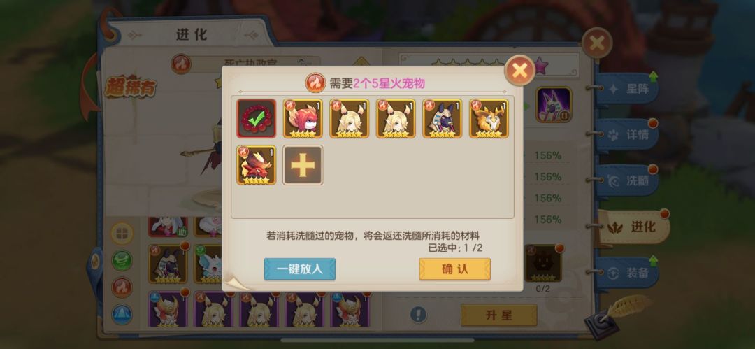 2.任务获得的红色珠子在升星中可当作5星冯宝宝本体使用