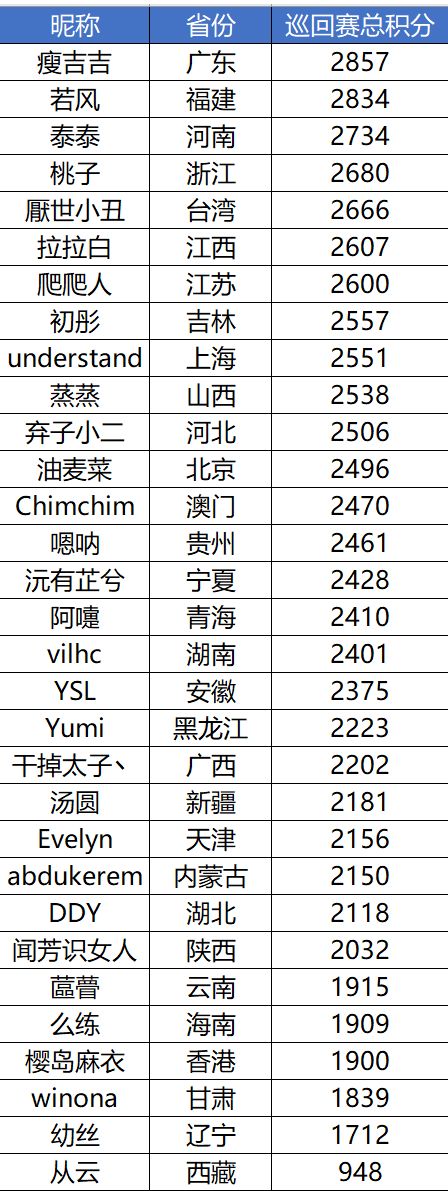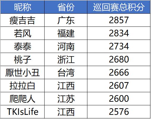 由于目前还是周预赛初期,玩家们的分数普遍还不太高。前两日的比赛中,来自广东省的“瘦吉吉”以2857分的成绩暂列首位,但并没有拉开与后面选手的差距!第二名的“若风”(福建)目前拿到2834分,紧紧咬住第一名!不过现在谈论谁能够在预赛中获胜还为时尚早,毕竟在之前的比赛中我们也见过周末一天暴富的案例!希望各位玩家都可以努力冲击一下榜首哦~ 在三到七位的则分别是来自河南的“泰泰”,浙江的“桃子”,台湾省的“厭世小丑”,江西的“拉拉白”,江苏的“爬爬人”和同样来自江西的“TKIsLife”!希望各位玩家都继续努力,在本周的预赛中再创佳绩!