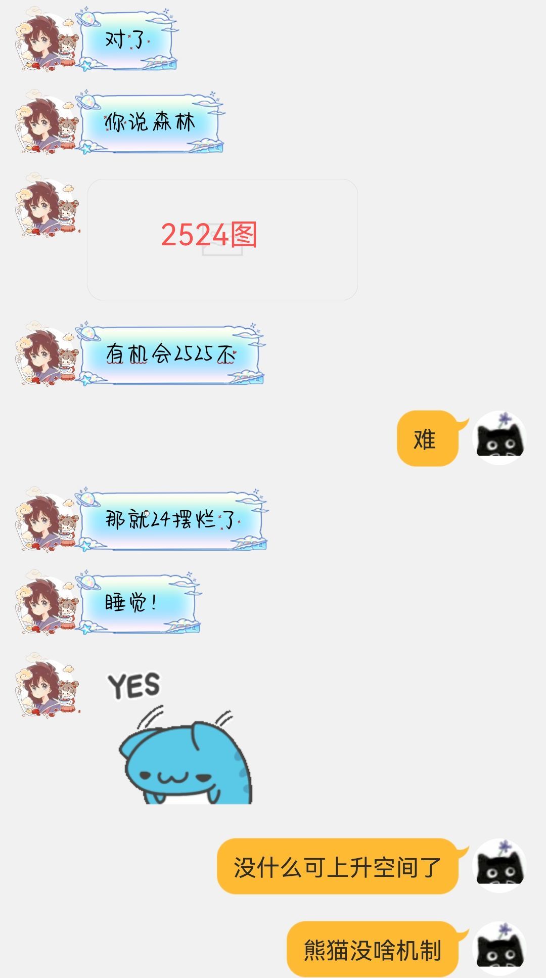 自从琳琳打出了2524后,我便觉得森林的极限尘埃落定,就如同我上面图片说的那样,熊猫切流派可探索的点只剩下“完美的点地”了,再想通过改善细节而提高分数,这不太可能。