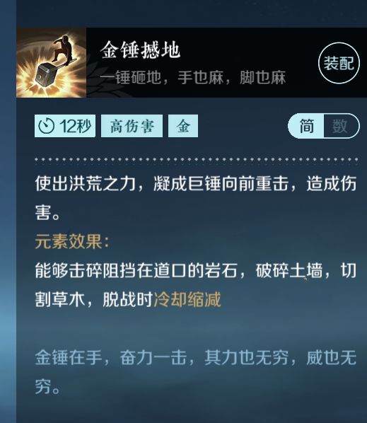 面对藏在坚石后面的宝藏,尝试使用江湖技能【金锤震地】来一锤破法吧