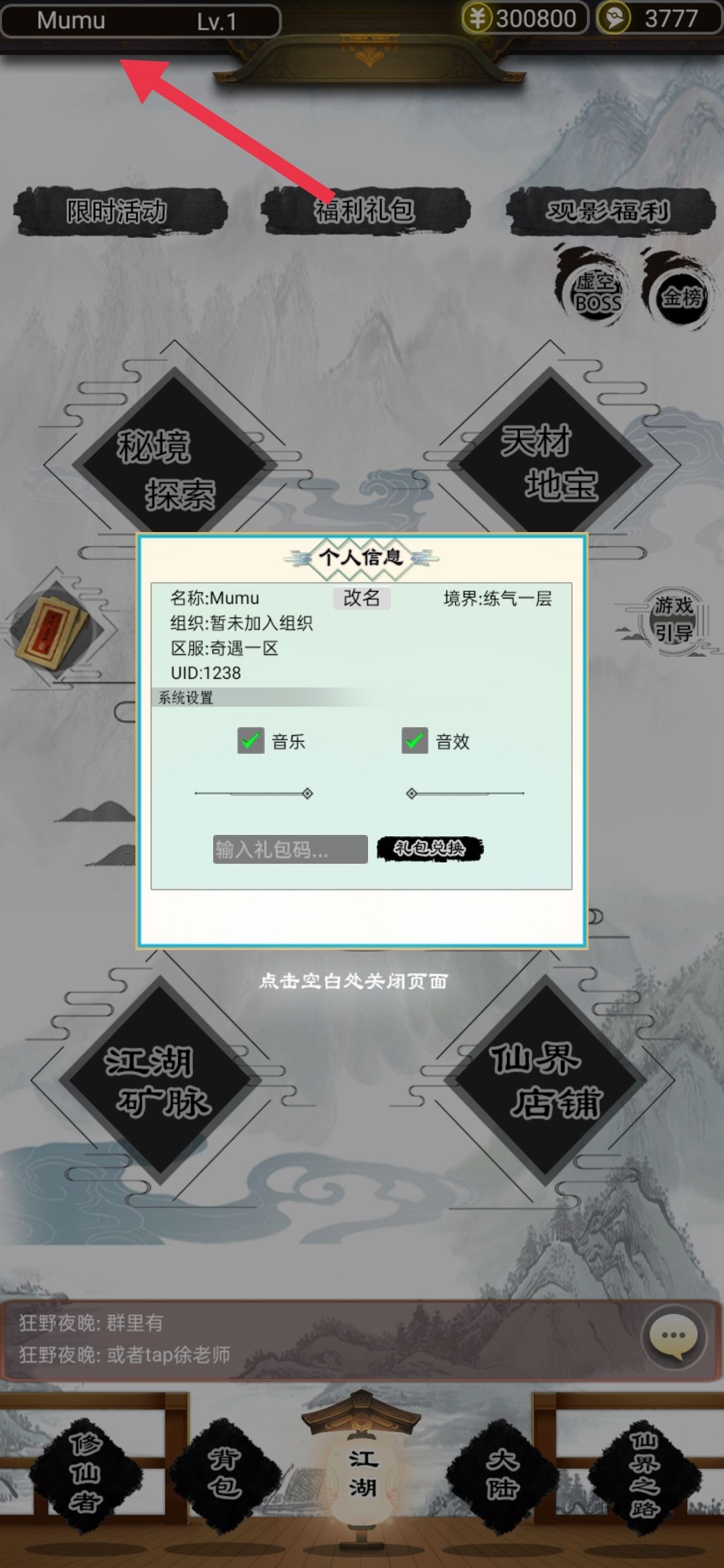 领取完毕,点击秘境探索,直接用1000灵玉抽奖,运气好抽到炼虚修士卡最好,三个为极佳,两个最好(前两个为冲榜玩家开局,如果没有好开局可以加官方群:305409137,下群里安装包重开,tap里的好像重开不了。休闲玩家如果不在意开局可以忽略,不过官方群可以加一下