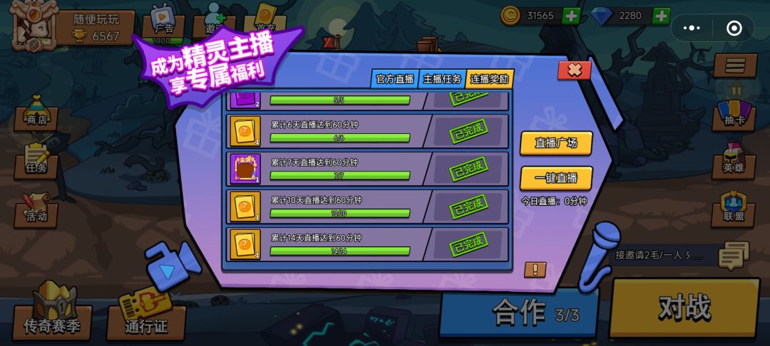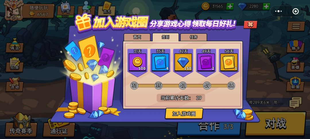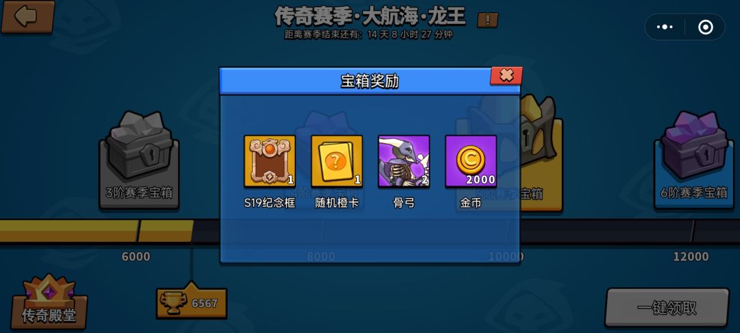 4;联盟宝箱,每赛季一次,满了一个随机金。