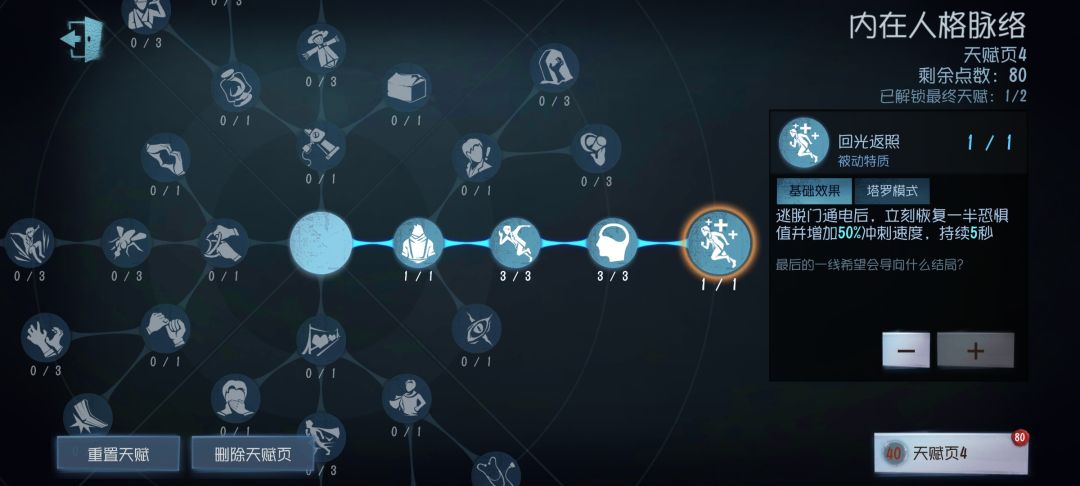 即天赋页中的“回光返照”,位于天赋页最右侧,是非常重要的天赋,求生必带天赋之一。因其可以在修开五台密码机的一瞬间回血加速,又名“大心脏”