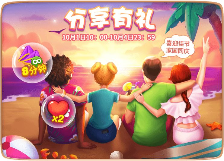 活动期间,分享游戏即可获得惊喜道具和爱心奖励哟~