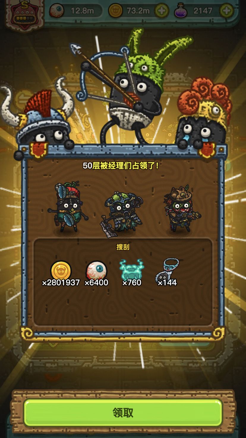 50层就是自动探险收益上限。手动探险收益主要是途中商店的物品。用狩猎货币可买蛋、四叶草、残破配方、回炉料等物资。其中升级用的拉盖和魂只能自动/成就/任务目标获得。