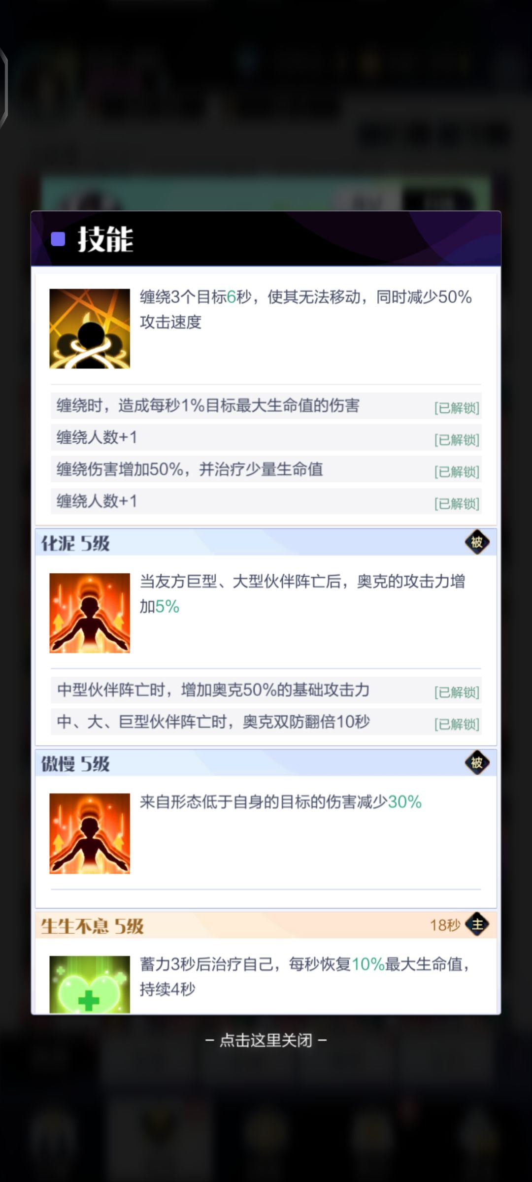 这人物是相当的哇塞!很多攻略都没怎么提起他,我不理解我为奥克代言,也是因为他星级高试了一下发现的,那是相当的哇塞!其他人都是推荐钢铁壁垒赫迁做大盾多(当然啦也很好用,各人有各人的喜好,不要打我卑微吐槽)言归正传,家人们看奥克的技能介绍能自身回复,有减伤加双抗,有控制,队友死了能吸取为自己所用,简直就是不倒战神yyds,旺仔来了都要说他棒👍🏻