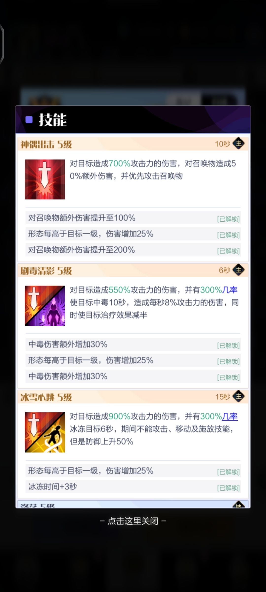 其实一二射的评价我都觉得差不多,但毕竟御姐香啊,那必须给她一射,你们会理解的吧家人们。(坏笑)咱们来看看她的技能,对召唤物伤害加倍,清场神技可以让我们更好的以多欺少。能群殴的为啥要单挑呢嘿嘿。下毒给对面,自带痛苦面具让对面无情掉血降低回复能力,只要对面奶不起来,我们就能跑马拉松。冰冻加上奥克的捆绑让对面动弹不得,玩的就是脏。消灭敌方中型人物还能直接减少90%的CD,攻击自身大的还能增加伤害。简直就是老好人,都不欺负比自己小的(ꐦÒ‸Ó)你个老六。马拉松回合制伤害代言人达摩姐姐。