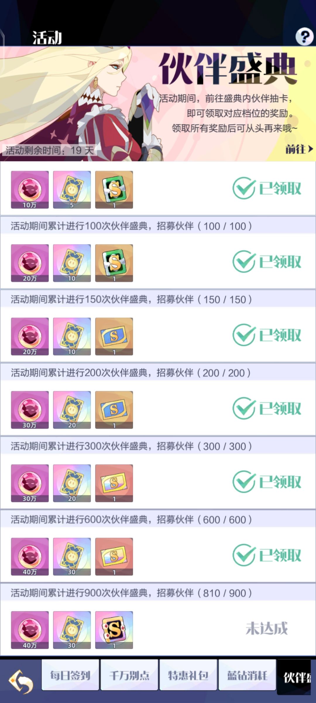 目前游戏真的诚意满满,如上图所示,我已经快900抽了,还有1w的钻石可以随意嚯嚯,重要的是我是伪零氪党哦,为啥是伪呢?看下图