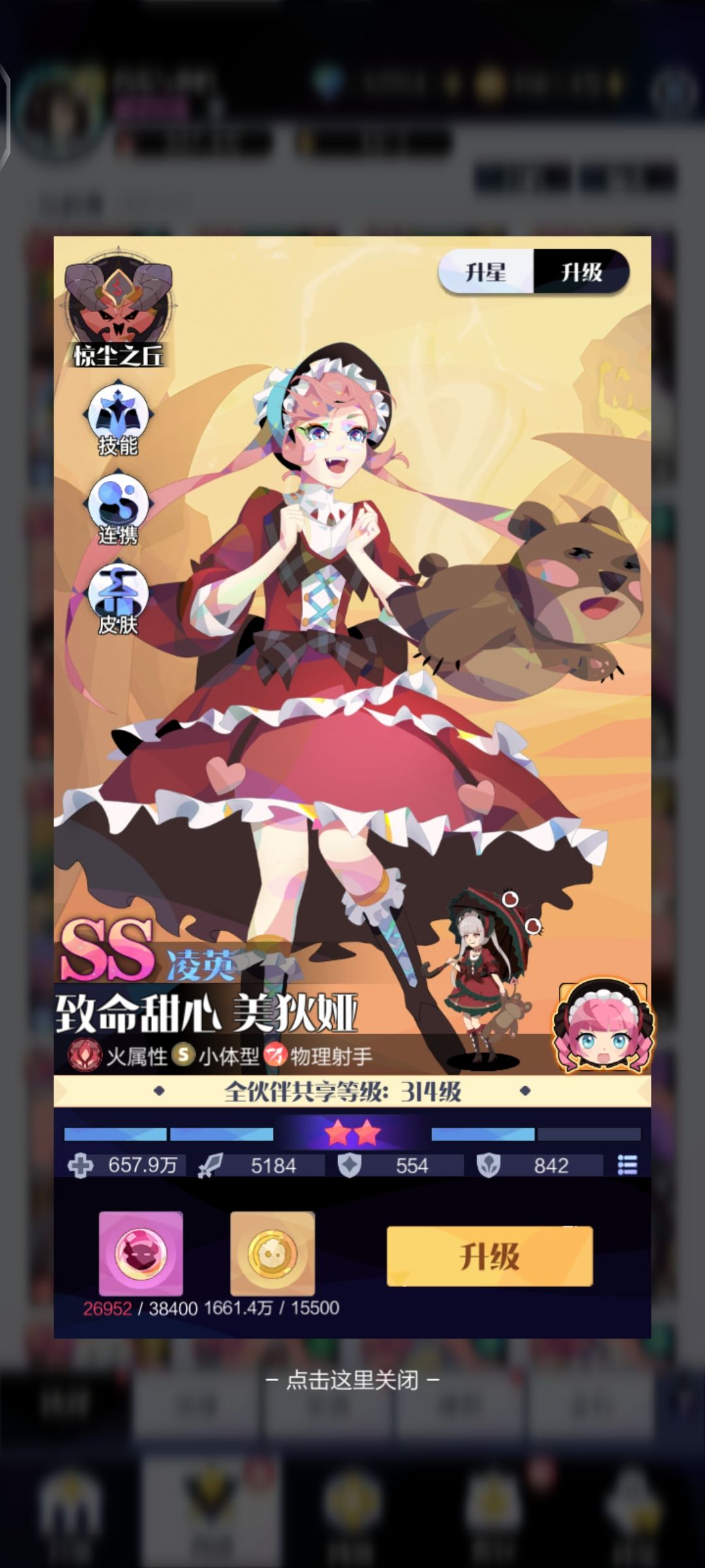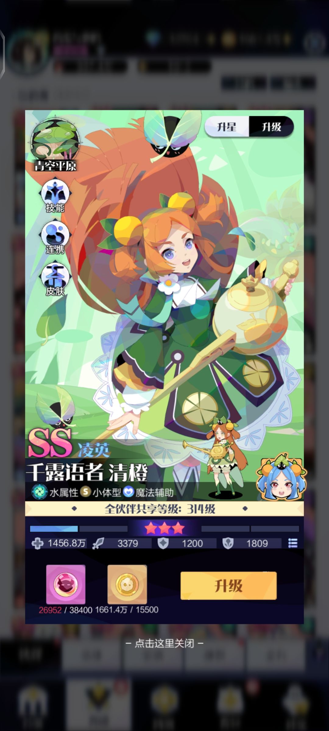 橙妹小跟班阿狸,堪称完美的搭档。净化8个队友减益效果,我靠堪称滚筒洗衣机,瞬间给你带来清爽,怪不得古书都说狸猫变太子,啥啥都能变,会玩。心念一闪,给队友增加50%的闪避,神级之一,只要你是欧皇,那这技能就能让你看到满屏的miss,这不香?你要是再是天选之子,芜湖,队友刚用完橙妹妹的圣盾纸尿裤,20次免伤的瞬间接上这40秒miss,再轮回接上20次圣盾,无限循环。啧啧啧,不出意外的话你只会听到你朋友的一句话,妈的这里有托,你真该死啊。加奶,减少对面攻击力,队友死了冷却自身技能,可惜了既生瑜何生亮,没有橙妹妹简直就是一辅。当当跟班也挺好。下一个~