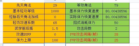 因为身法关乎攻速与防御,所以,我的加点方案是基于攻速阈值来的。大家根据自己的想要组合的武学进行选择身法阈值,我会在后面总结予以推荐,但如果想要更精细的加点方案,你需要看图中的数据。
