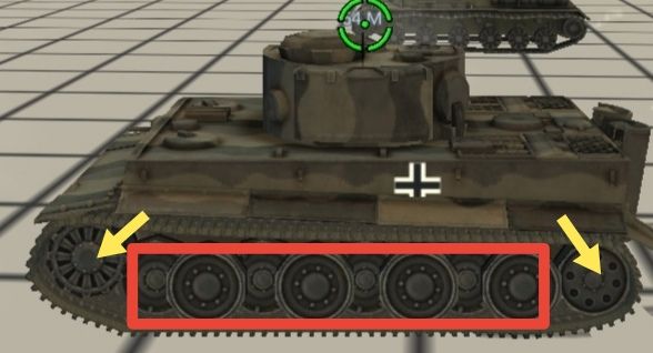 前后导向轮的概念↓(黄色箭头是导向轮,红色框框是负重轮)