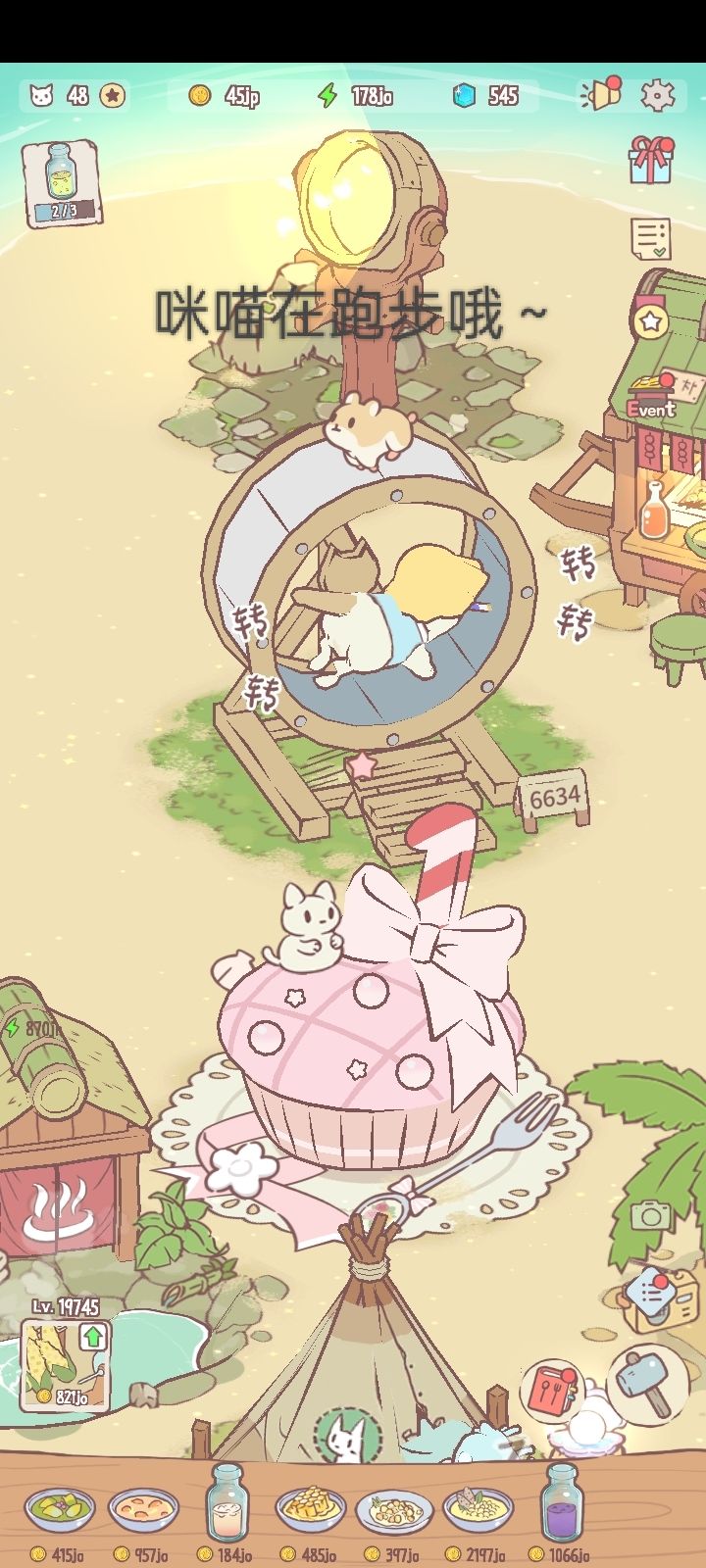 他是需要等待小猫做饭,然后卖出金钱和体力,再用这些东西去升级他们获得新的设施。
