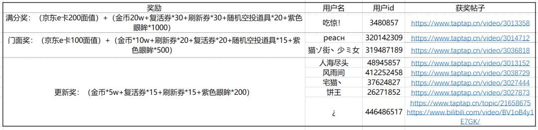 门面奖两位:每人送出(京东e卡100面值)+(金币*10w+刷新券*20+复活券*20+随机空投道具*15+紫色眼眸*500)