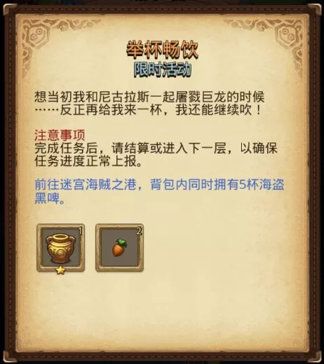 冒险者们只要前往海贼之港收集5杯黑啤开启畅饮模式