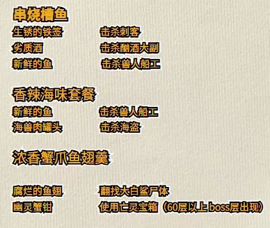 击杀野怪就有概率掉落所需食材其中,浓香蟹爪鱼翅羹属于隐藏菜品
