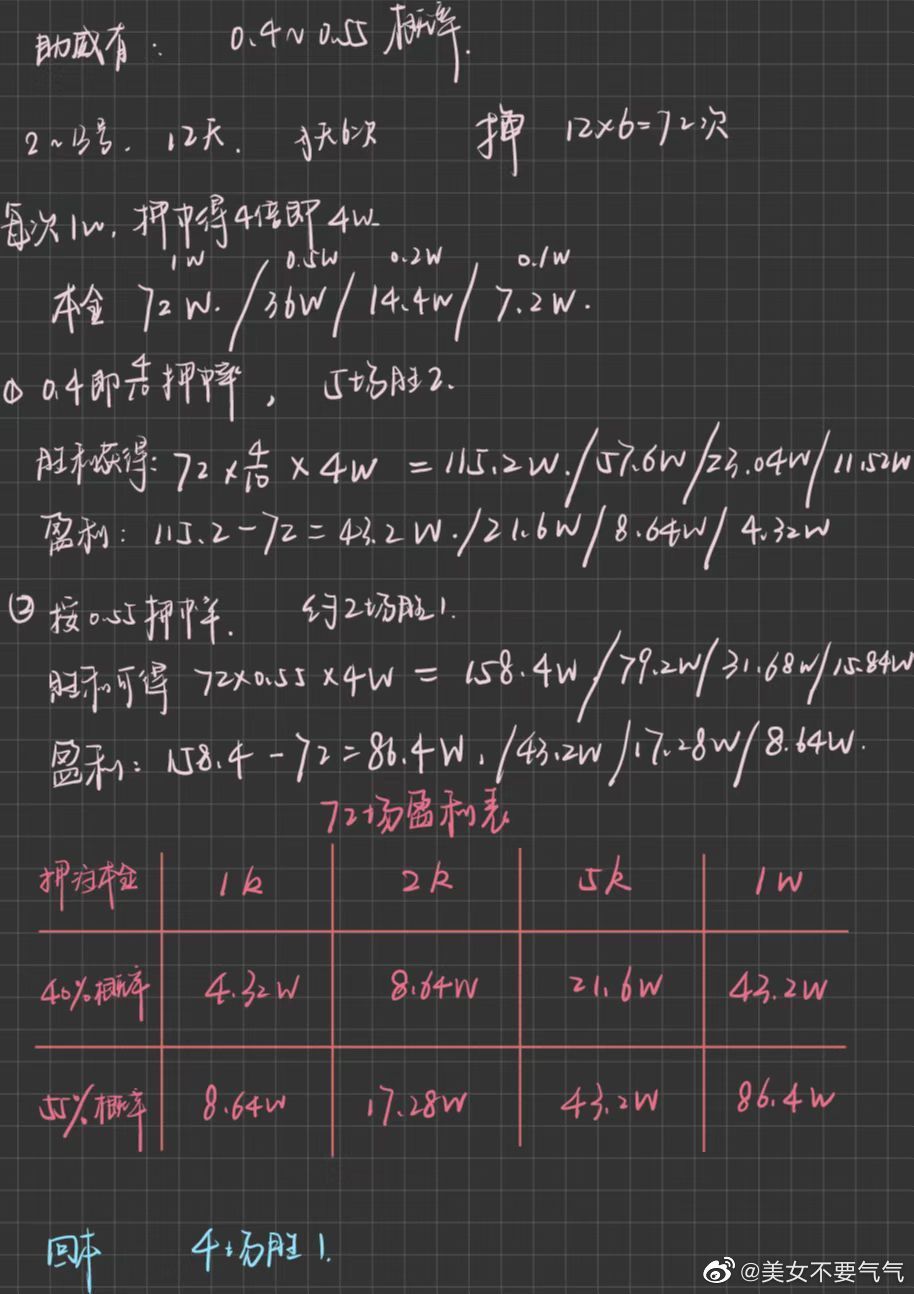 1.所得结果是完全按概率算出,不排除每场都失败或每场都胜利的可能性,所以建议先低堵住押几场观望情况!!!谨慎押注。